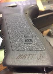 | Laser Engraved in a readable location. The minimum depth required is .003 inches and .0625 inches in height. We engrave it to .03 inches so that you can coat the gun with any of the coating products without problem of being able to read it after coating. We can engrave through any coating products without problems. We can also apply blackening agent that leaves the surface permanently coated and protected in the engraved area. We can engrave on almost any location on the gun and there is no need to strip the gun for us to engrave it. |